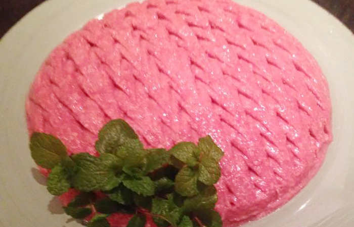 Depois coloque em uma travessa bem bonita e decore com cebolas roxas.” Taib!