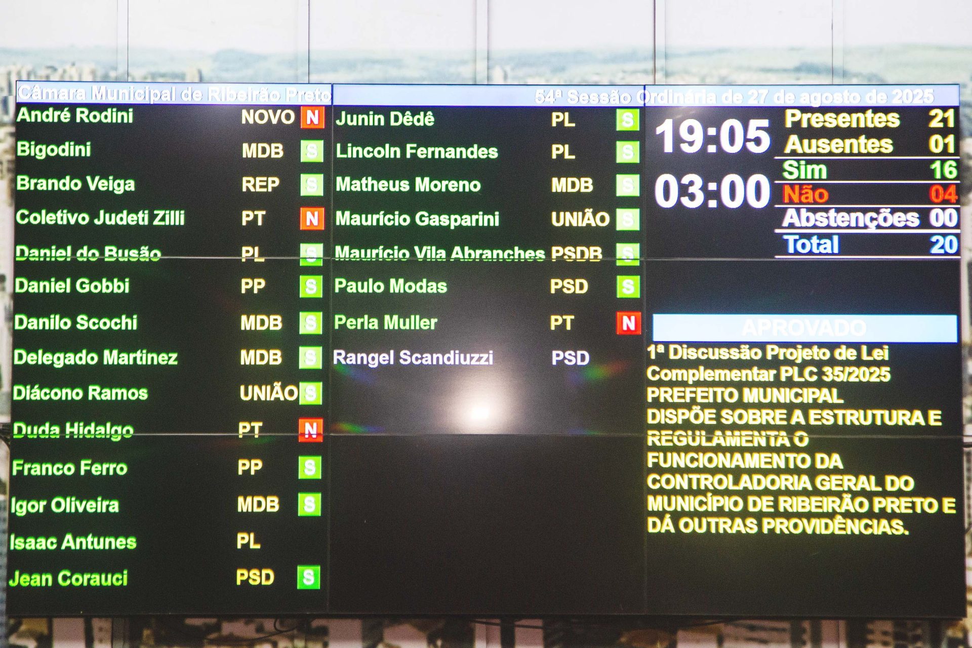 As três vereadoras da oposição – Duda Hidalgo, Perla Müller e Judeti Zilli, todas do PT – tentaram obstruir a votação com pedidos de discussão de cada projeto, o que poderia adiar a decisão para a próxima sessão, mas manobra da base governista garantiu a aprovação. André Rodini (Novo) também votou contra. A redação final será votada na segunda-feira, 1º de setembro.