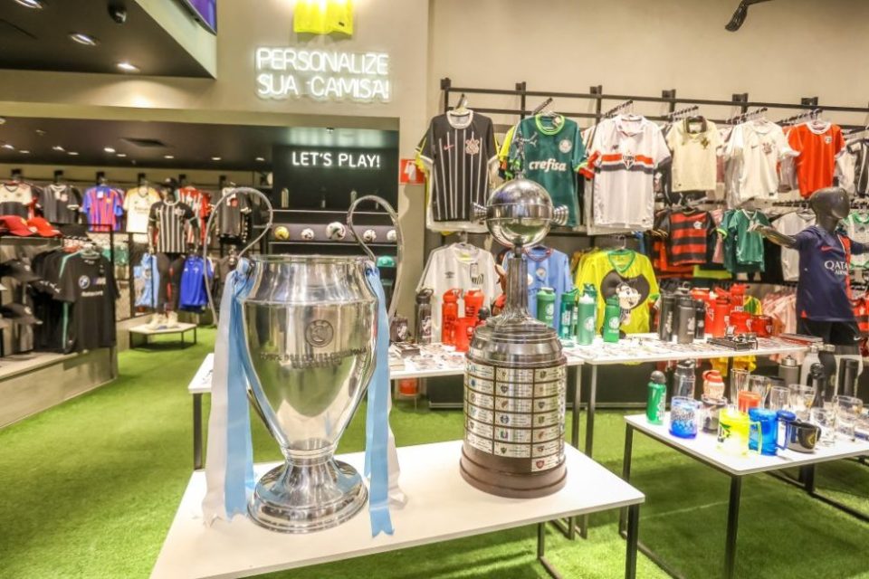 As peças estão à mostra na loja de artigos esportivos Bola Show, trazendo ainda a história dos campeonatos e outras curiosidades (Divulgação)