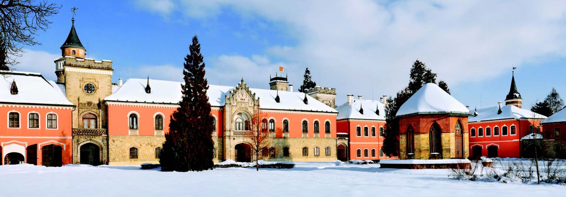 Os palácios da área de Lednice-Valtice – Na Morávia do Sul, também no inverno você pode visitar vários monumentos que ficam ótimos nesta temporada. Nos fins de semana, você será recebido com prazer no palácio Lednice. Nos arredores, há um parque paisagístico e, após a visita, você pode caminhar pelas barragens e o rio Dyje. Aqui o turista pode ver não só os gêneros locais de aves aquáticas, mas também aqueles que vieram do norte da Europa para passar o inverno aqui.