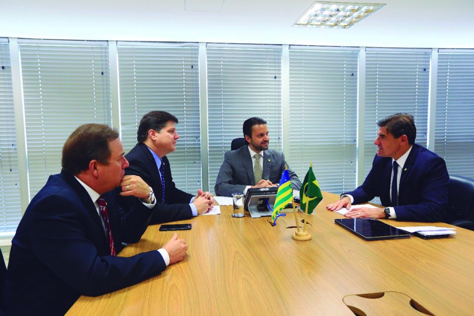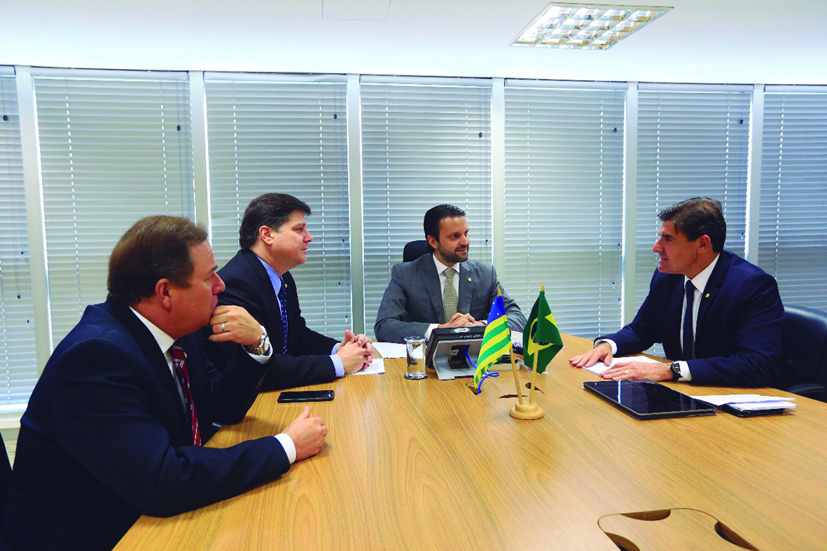 Foto: O prefeito Duarte Nogueira, acompanhado dos deputados federal Baleia Rossi ((MDB) e estadual Léo Oliveira (MDB), em audiência com o ministro das Cidades Alexandre Baldy