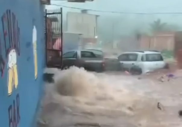 No Jardim Branca Salles, queda de muro de cooperativa de recicláveis causou enxurrada e arrastou veículos (Foto e vídeos: Notícias Ribeirão Preto/Facebook)