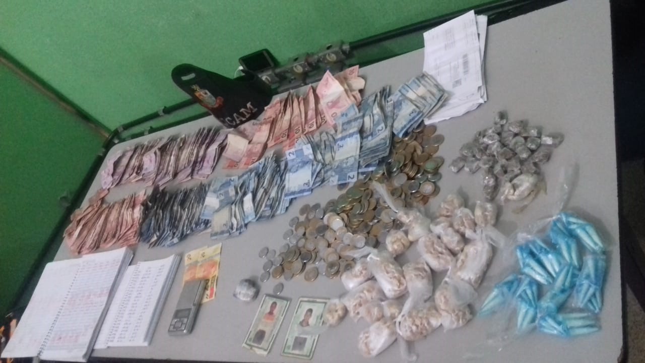 Foram apreendidos, 643 pedras de crack, 80 cápsulas de cocaína, 26 trouxas de maconha e R$ 3.302,85 em dinheiro, proveniente do tráfico de drogas.
