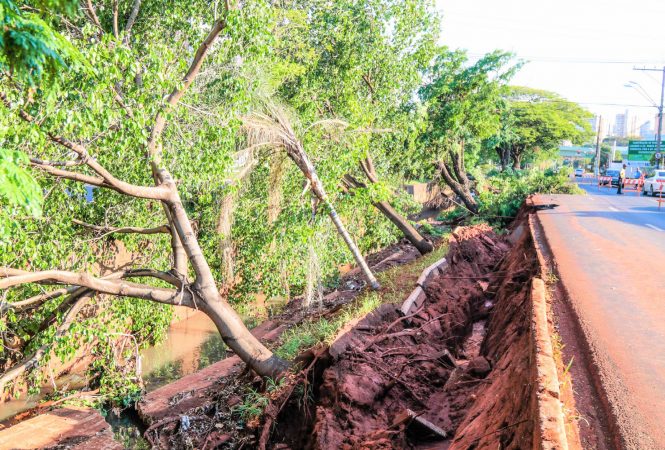 Agentes de trânsito colocaram cavaletes e faixas para alertar os motoristas, e monitoram o fluxo de veículos. Segundo o assistente e secretário interino de Obras Públicas, Luiz Eugênio Scarppino, uma adutora do Departamento de Água e Esgotos de Ribeirão Preto (Daerp) rompeu na manhã de domingo (13). O volume de água provocou erosão e a queda do muro de contenção. As quatro árvores que tombaram no córrego seriam cortadas e retiradas ainda nesta segunda-feira. Uma proteção seria providenciada para evitar que a encosta continue desmoronando.