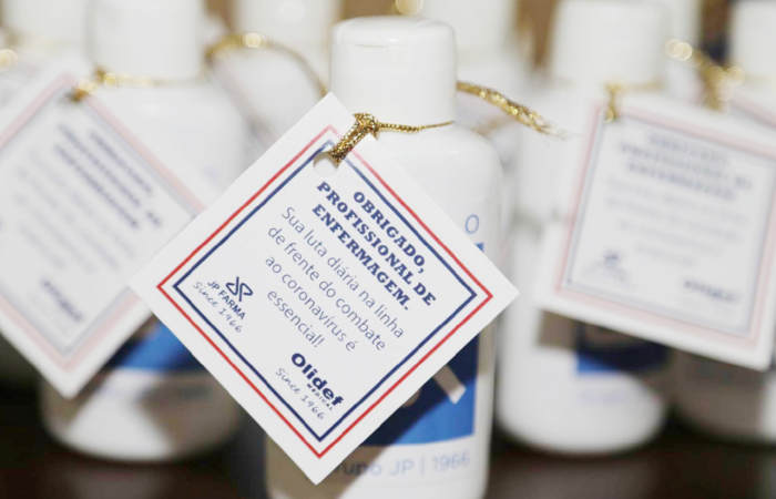 A entrega foi realizada na sede da empresa e o presidente da JP Farma, André Ali Mere, se referiu à doação como forma de agradecer a todos os profissionais de enfermagem pelo seu importante trabalho. Estava presente, também, o representante da empresa JP Farma, Marco Aurélio Figueira, responsável pelo contato com a Comissão de Doações e organização de todo o processo.
