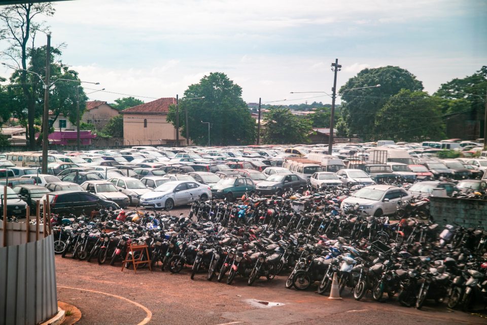 Carros e motos conservados, além de sucatas estão apreendidos no pátio da empresa municipal, responsável pelo trânsito na cidade