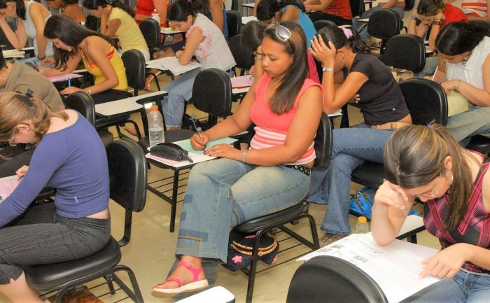 É importante, portanto, estar atento às regras para não correr o risco de ser eliminado, nem de perder a prova. Uma das primei­ras medidas é verificar o local do exame, disponível na Página do Participante e no aplicativo do Enem, disponível para que pos­sa ser baixado nas plataformas Apple Store e Google Play. O local de prova está no Cartão de Con­firmação da Inscrição. No dia do exame, é preciso tomar alguns cuidados. Antes de entrar na sala, os estudantes receberão um enve­lope porta-objetos, onde deverão guardar tudo que não é permiti­do na hora da prova. Esse enve­lope deve ser fechado e lacrado e deve ficar debaixo da cadeira até o fim da aplicação.