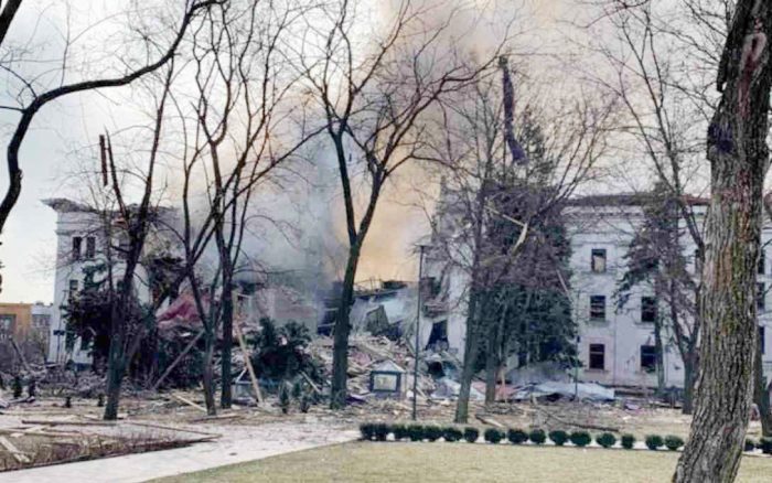O bombardeio da Rússia ao teatro de Mariupol, cidade de 400 mil habitantes na Ucrânia, destruiu o local que servia de abrigo para pessoas que precisaram abandonar as suas casas por conta da guerra. Centenas de crianças estavam no local, e imagens divulgadas nesta quinta-feira, 17 de março, mostram que os ucranianos haviam pintado os dois pátios do edifício com a palavra “crianças” para avisar sobre a presença delas.