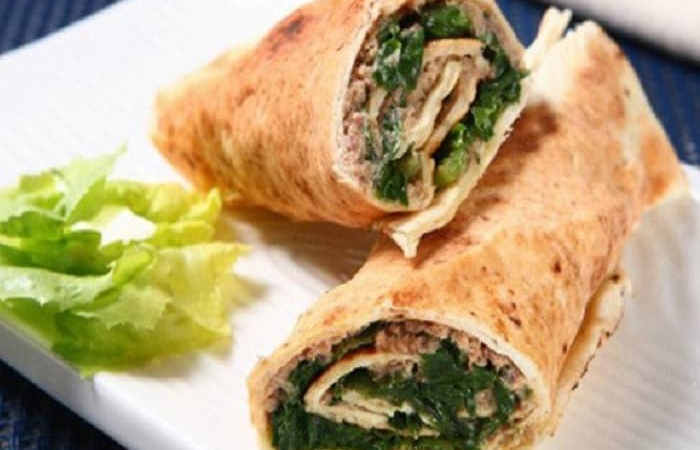 5. Cubra com o refogado de escarola e enrole como um rocambole.