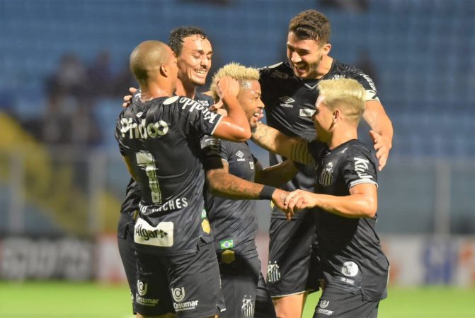 A equipe santista começou o duelo levando um susto no primeiro minuto. Em um ataque pela direita, Jonathan recebeu na linha de fundo e bateu cruzado. Rápido no tempo de reação, Everson reagiu de forma precisa e espalmou para escanteio.