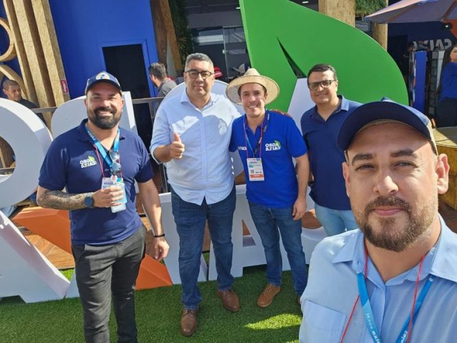 O Secretário da Administração do município de Altinópolis, Eduardo Poiares em visita ao estande da CAIXA, na Agrishow. Recentemente o município recebeu o Selo CAIXA de Gestão Sustentável. O reconhecimento é dado para municípios que apresentam práticas sustentáveis de governança, utilização responsável dos recursos públicos e preocupação socioambiental.