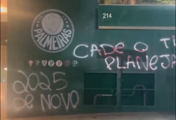 As seguintes frases foram vistas nas pichações: “2025 de novo”, “Cadê o planejamento?”, “Abel, acabou a magia?”, “Leila, seu negócio é roubar”, “Time sem vergonha” e “SPAlmeiras”.