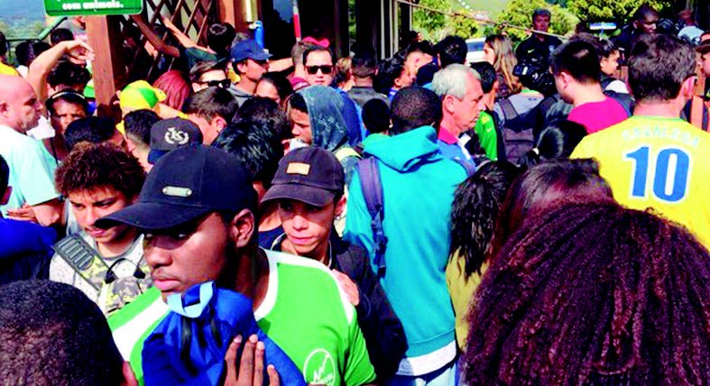 A última atividade aberta da seleção brasileira, em Teresópolis, neste período inicial de preparação para a Copa do Mundo da Rússia foi acompanhada por festa e tumulto. No início da tarde desta sexta-feira, durante quase duas horas, pelo menos 200 torcedores se aglomeraram no portão de acesso à Granja Comary, na expectativa de acompanhar o treino. O portão de acesso ao condomínio – além do CT, a Granja também abriga casas – precisou ser fechado pelos seguranças e houve tentativa de invasão. O acesso só foi liberado às 15 horas.