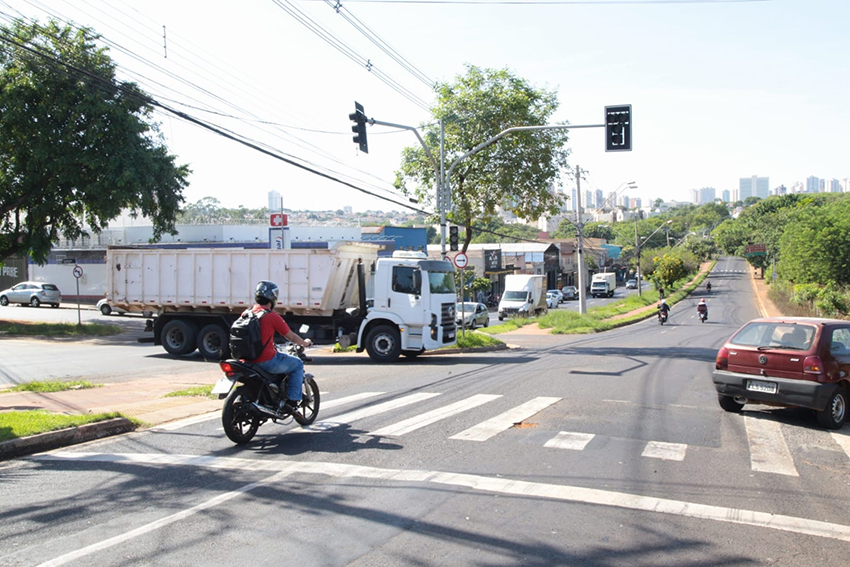Com falta de sinalização, veículos pesados acabavam interditando uma das pistas das avenidas até concluir a conversão (Foto: Alfredo Risk)