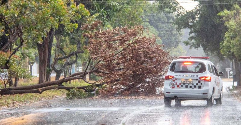 À noite teve mais chuva forte. O vento derrubou várias árvores, atingiu a rede de energia elétrica e causou pane em semáforos. O muro de uma escola foi atingido por uma árvore. Nesta semana, o calor deve prevalecer, com a temperatura máxima oscilando entre 34ºC e 35 graus Celsius até sexta-feira (18), quando pode chover apenas 1,9 milímetros.