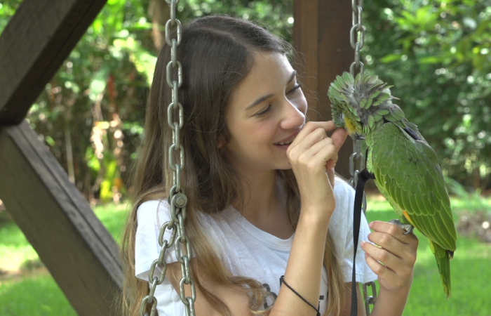 No último e episódio, que estreou no dia 24 de julho, Nina Kanner, de 13 anos, fala sobre a convivência com Trevo e das aulas em que ensina voo li­vre ao papagaio, uma técnica ba­seada na confiança entre a ave e seu tutor, revelando experiências que têm como fio condutor a re­lação entre humanos e bichos.