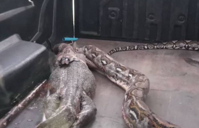 O animal, que pesa 44 quilos, foi identificado como uma píton birmanesa. Ela foi encontrada pela dona da casa, Uraiwan Seksuk, que vive na cidade de Mueang Samut Songkhram, na região central do país. Logo após perceber que a serpente se arrastava para baixo de um motor quebrado em seu quintal, ela ligou para uma equipe de resgate a fim de capturá-la.