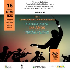 A Orquestra Sinfônica de Ribeirão Preto faz concerto ao ar livre para comemorar os 168 anos de Ribeirão Preto. A apresentação integra a série Juventude tem Concerto em edição especial e acontecerá no domingo 16 de junho, no Teatro de Arena, com entrada gratuita, a partir de 9h30.