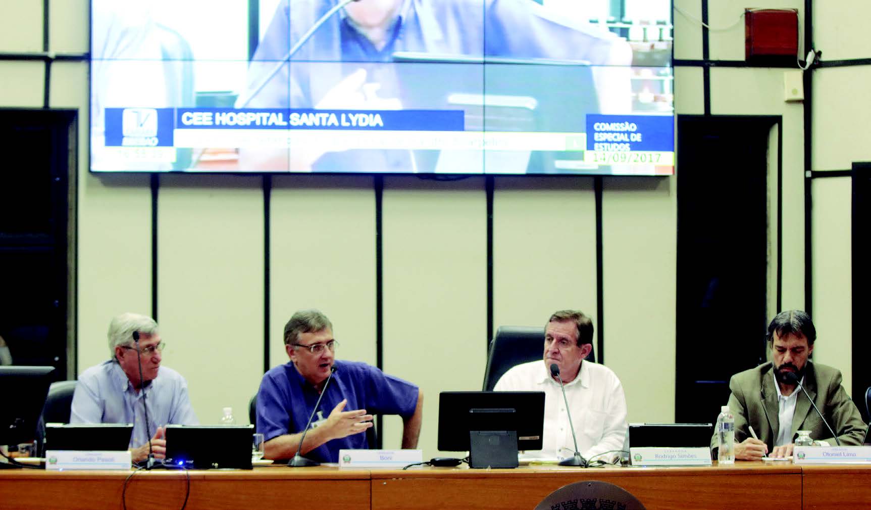 A Comissão Especial de Es­tudos (CEE) que discute o papel do Hospital Santa Lydia no aten­dimento à saúde pública em Ri­beirão Preto ouviu, na tarde desta quinta-feira, 14 de setembro, o depoimento do secretário munici­pal Sandro Scarpelini. A audiência ocorreu no plenário do Legislativo e contou com a participação de Jorge Parada (PT, presidente da CEE), Luciano Mega (PDT), Be­tinho Scandiuzzi (PSDB), Gláu­cia Berenice (PSDB) e Nelson das Placas (PDT).