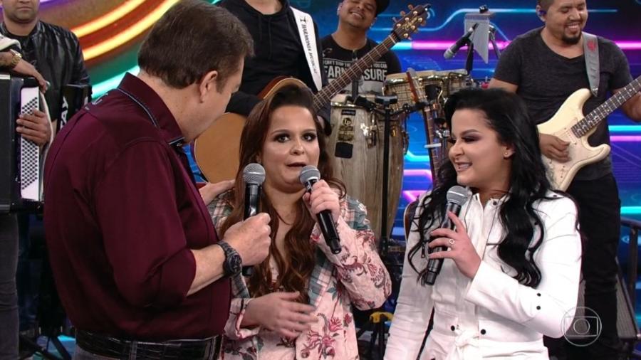 Pela segunda vez no “Domingão do Faustão”, a dupla Maiara e Maraisa falou da emoção que é estar no programa. “A gente assistia seu programa desde criança, e o sonho da minha vida sempre foi estar aqui na sua frente”, disse Maiara emocionada.