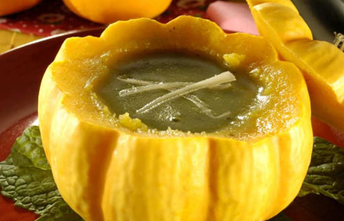 10. Aqueça rapidamente a moranga e despeje a sopa dentro dela.