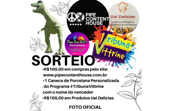 Prêmios ☆R$ 100,00 Voucher compras no site www.pipecontenthouse.com.br ☆R$ 100,00 Compras Uai Delícias *itens selecionados. ☆1 Caneca de porcelana personalizada do programa Tribuna Vittrine com o nome do vencedor.