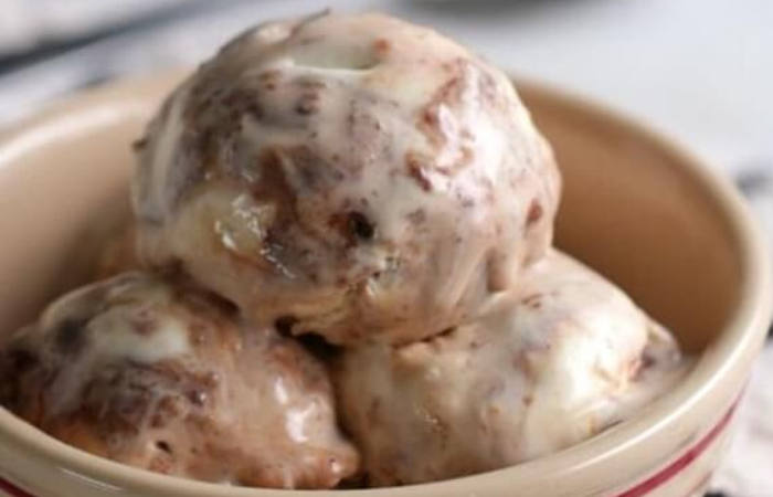 4. Adicione o creme de avelã por cima e, com um garfo, misture delicadamente na cobertura de paçoca.