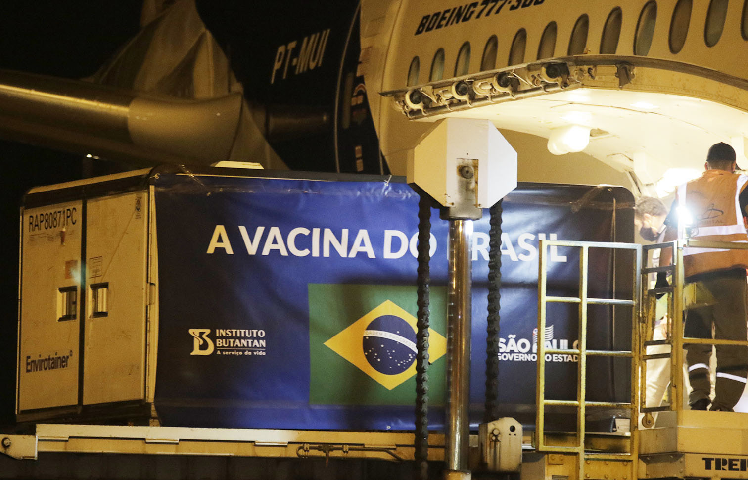 O Butantan aguarda uma nova carga de 5,6 mil litros, suficiente para a fabricação de 8,7 milhões de doses da Coronavac, até o próximo dia 10. Com as duas remessas de matéria-prima, o instituto diz que será capaz de produzir até 600 mil doses diárias do imunizante.