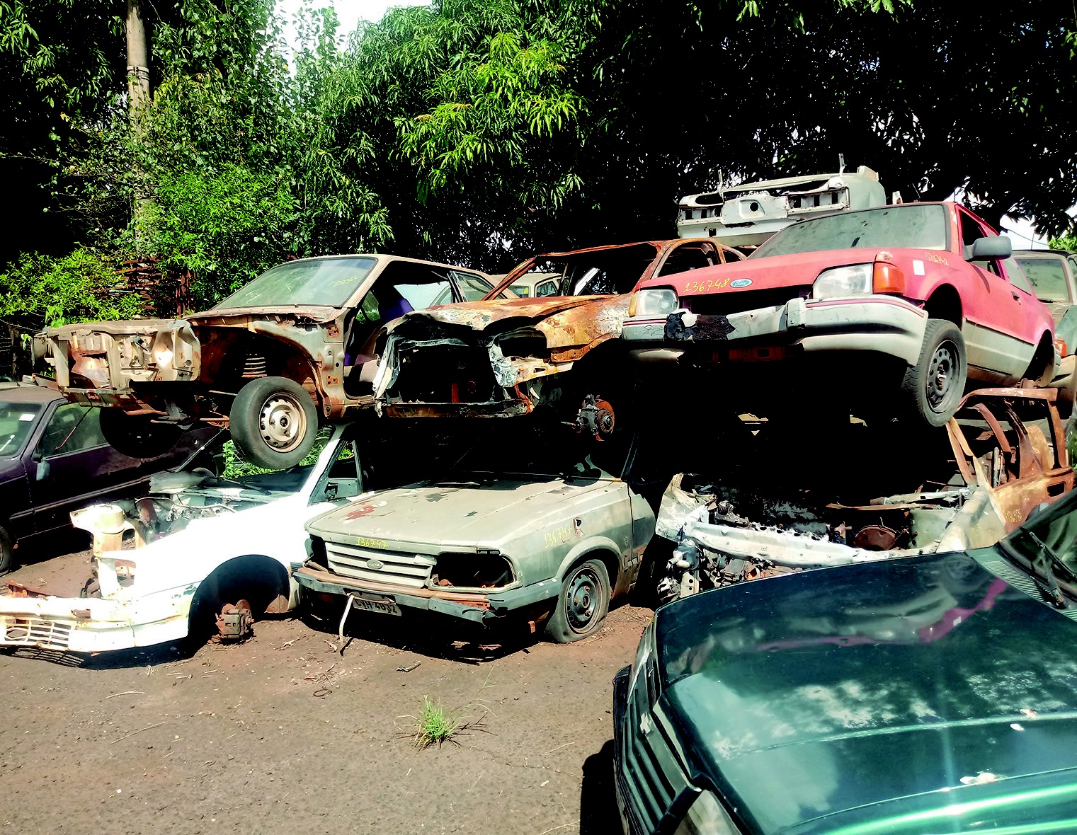 Estão nesta situação carros com ausência parcial ou total de carroceria, carroceria tomada por oxidação, veículos sem vidro ou com vidro danificado, sem pneu ou roda, com pneus furados ou esvaziados, sem motor, placa de identificação, chassi, farol e lanterna e sem pára-choque.