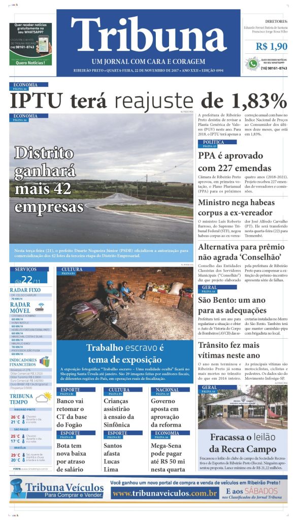 “Câmara Municipal de Ribeirão: a ‘grande família’ – Supersalários e muitas gratificações”. Foi com esta manchete que, em 17 de novembro de 2017, o Tribuna Ribeirão denunciou com exclusividade possíveis irregularidades existentes nos salários de vários servidores da Câmara de Ribeirão Preto.