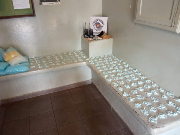 Na abordagem, foram apreendidas 10 mil cápsulas vazias, 1348 cápsulas com cocaína, um tijolo de crack, dois rádios de comunicação e R$ 30 em dinheiro.