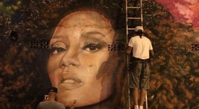 Confira abaixo a publicação de Taís Araújo e outras imagens que mostram o processo do mural: