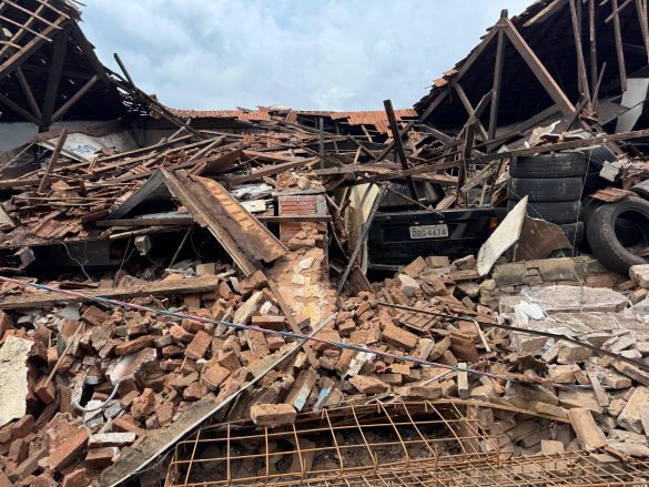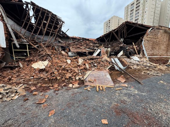 O telhado e a parede de uma oficina de automóveis desabaram em Ribeirão Preto (SP) no fim da manhã de domingo (2). Nenhuma pessoa ficou ferida.