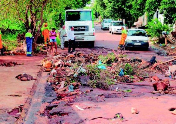 Em 27 de fevereiro, a corren­teza também arrancou o asfalto e levou consigo pequenas árvores, galhos, sacos de lixo e até entu­lho. A água invadiu várias casas. A Defesa Civil registrou inunda­ção na comunidade Vida Nova, no Jardim Marchesi. Equipes do Corpo de Bombeiros e da Guar­da Civil Municipal foram envia­das ao local.