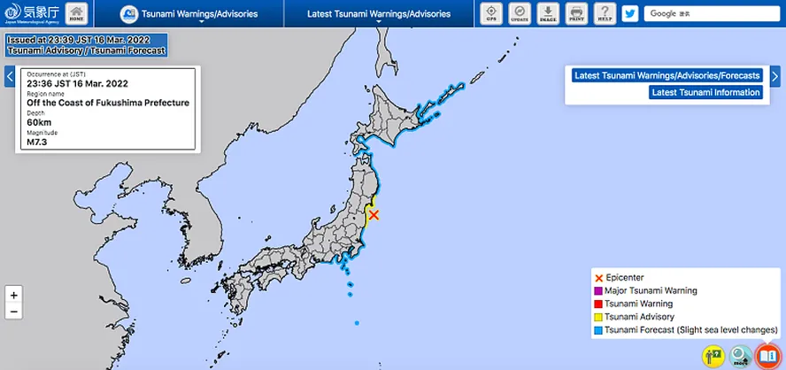 Por volta das 4h53 (de Brasília), o epicentro do terremoto foi registrado no mar de Sanriku, a cerca de 100 km a leste da cidade de Miyako.