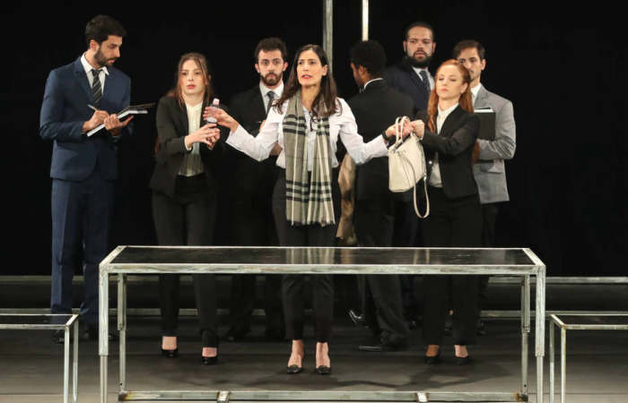 “Logo no início do texto, ele escreve: ‘a peça é sobre o excesso – e temos de sentir isso'”, observa Pâmio, que preferiu não localizar as ações em um lugar específico (no original, é Londres), tornando possível que elas aconteçam em qualquer metrópole no mundo. Mas investiu na linguagem ágil, por meio de cenas curtas, em ritmo quase cinematográfico.