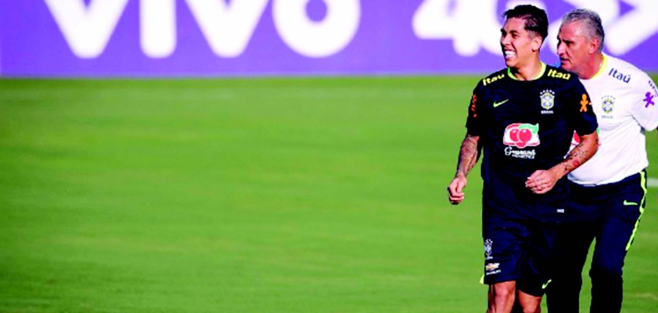 As entradas de Fernandinho e Firmino já haviam sido testadas no último treino realizado em Manaus, no domingo. Tite voltou a repetir a escalação na tarde desta segunda, em treino escaldante no mesmo local e horário do jogo desta terça. A sensação térmica ultrapassa os 40 graus em Barranquilla.