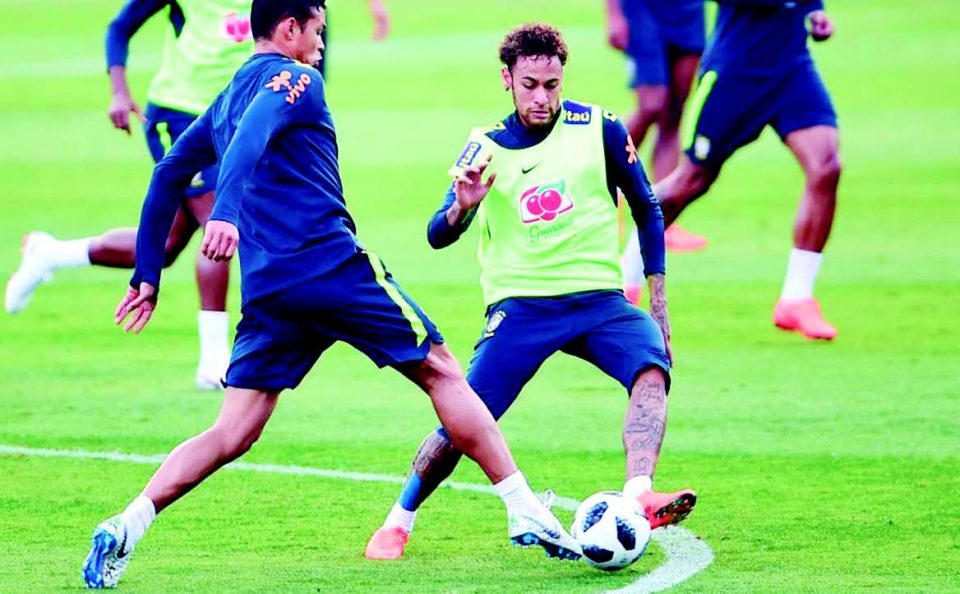 O técnico Tite comandou o primeiro treinamento com bola no gramado da Granja Comary durante a tarde desta quinta-feira. Sem o lateral direito Fagner e o atacante Douglas Costa, em recuperação de lesões, o comandante já dividiu dois times e proporcionou a Neymar a primeira chance de atuar com os companheiros desde sua lesão, sofrida em 25 de fevereiro.
