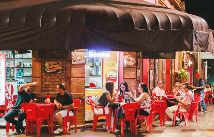 O distanciamento míni­mo entre as mesas deve ser de 1,5 metro, com aferição de temperatura e acesso a álcool em gel nos acessos aos esta­belecimentos.