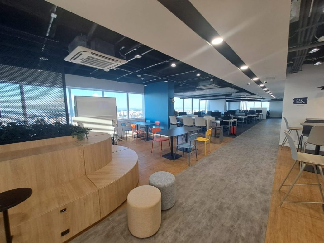 Ocupando diversos andares do edifício Trio, a estrutura do novo escritório conta com centenas de estações de trabalho, além de salas de reunião e um auditório próprio. O espaço ainda possui áreas de convivência como sala de games, refeitório, macro kitchens e arquibancada móvel para eventos e interação.