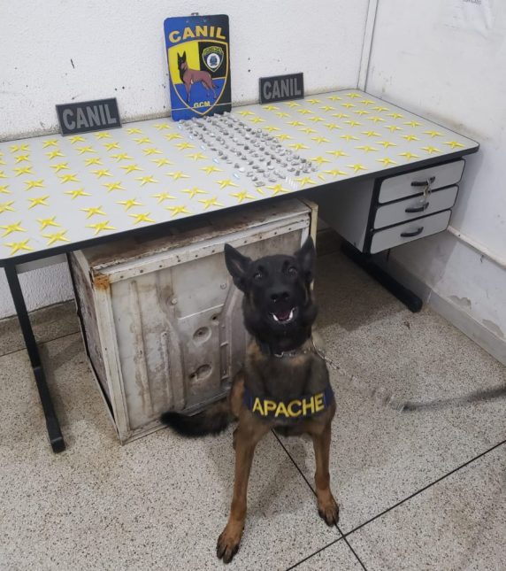 Os agentes fizeram buscas, mas não encontraram o caminhão. Ao retornar, passando pela comunidade, avistaram um homem que começou a correr com uma sacola plástica nas mãos. As viaturas foram atrás e, com auxílio do k-9 (cão de faro) Apache, conseguiram localizar o fugitivo. Com ele, havia 384 cápsulas com cocaína e 96 porções de maconha.