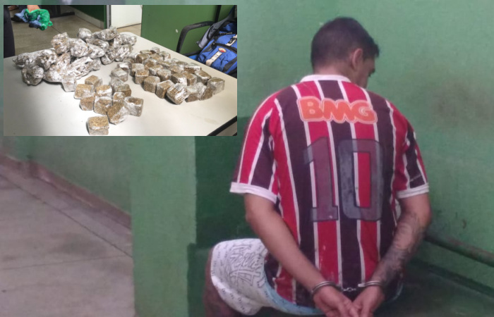 Os policiais militares avistaram o suspeito que estava em uma bicicleta, carregando uma mochila. Ao perceber a aproximação da viatura, ele tentou fugir deixando a mochila na frente de um bar, mas acabou sendo preso e a mochila apreendida. Dentro dela, 40 “tijolinhos” e 664 porções fracionadas de maconha.