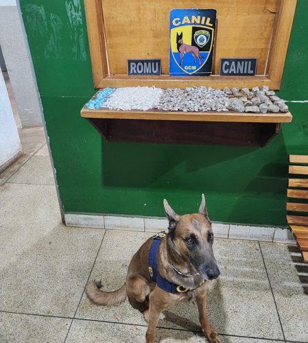 Viaturas do Canil e Romu faziam patrulhamento quando foram paradas por um homem que relatou ter visto um suspeito entrando com um pacote em um terreno próximo à UBS. Ele passou a localização e os agentes foram até o local.