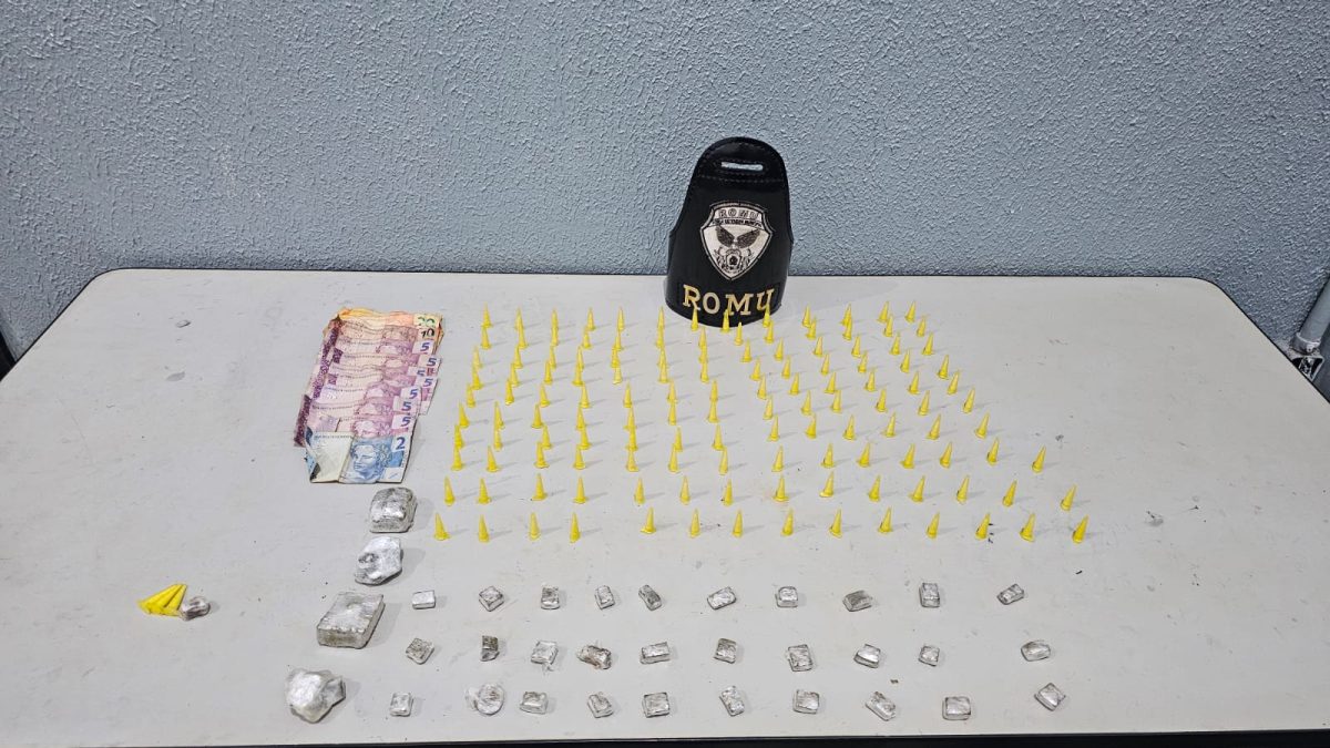 Em outra ação de patrulhamento, um homem foi notado na esquina da Praça Nilton de Barros, Quintino Facci II. Tentou fugir, mas foi contido. Com ele havia drogas e dinheiro. Com apoio do K-9 Fenrir, mais drogas foram localizadas e apreendidas.