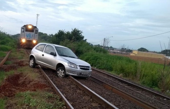 Na fuga, suspeito abandona veículo em linha férrea, que por pouco não foi esmagado por trem