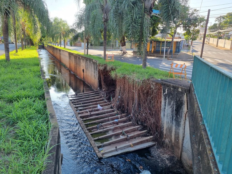 A parede de concreto cedeu por causa das fortes chuvas, e houve desassoreamento. Para fazer a obra, a prefeitura abriu licitação e deu início aos trabalhos de limpeza e de reparo no local. A obra está orçada em R$ 214.321,66 e deve ser entregue em 90 dias.