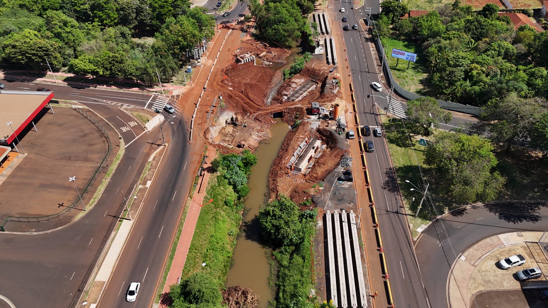 Com o andamento da obras de construção de duas pontes sobre o córrego Retiro Saudoso, neste sábado, 26 de abril, um trecho da pista Bairro/Centro da avenida Maurílio Biagi será interditado, em frente ao cruzamento da via com as duas pistas da avenida Leão XIII (acesso e saída).