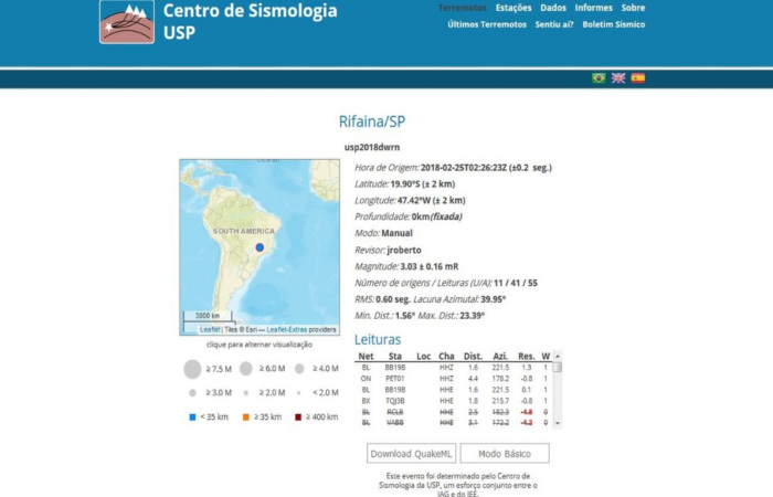 O tremor foi registrado pelo Centro de Sismologia da USP (Universidade de São Paulo) e, de acordo com o IAG (Instituto de Astronomia, Geofísica e Ciências Atmosféricas), também da USP, durou cerca de três minutos.