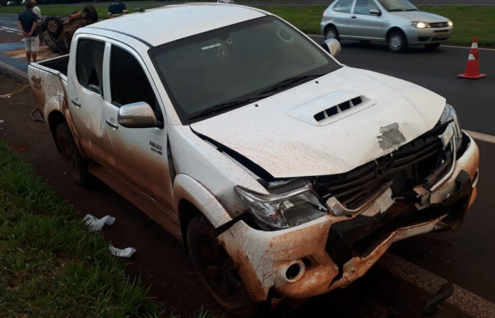 Na chegada dos policiais militares rodoviários no local do acidente, eles foram informados pelo senhor A. P. N., que o veículo I/Toyota/Hilux era conduzido por outra pessoa e era somente passageiro do veículo, que fugiu sem prestar socorro às vítmas.