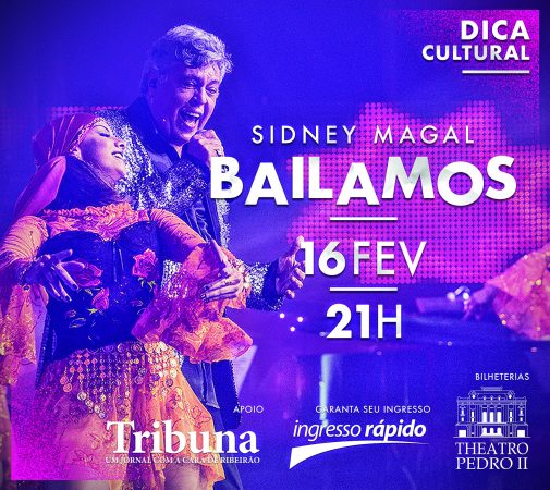 O jornal Tribuna vai sortear no dia 14 de fevereiro, um par de convites para o espetáculo “Sidney Magal – Bailamos”, que acontece no dia 16 de fevereiro, às 21h, no Theatro Pedro II.